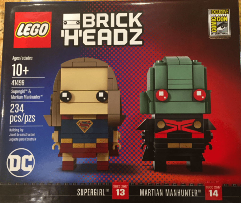 There are 3 other LEGO Supergirls I want to mention that didn’t appear in regular sets and that I unfortunately do not own in my collection. The first picture shows a Supergirl minifigure that was bundled with some starter packs for LEGO Dimensions Starter packs for the PS4 (Set Number 71171-2). This minifigure is very similar to the original Supergirl figure from 2015 however this figure uses a different hair piece, this one having a ponytail as opposed to the hair down from the other figure. The figure also includes a circular disk that is used to interact with the LEGO Dimensions Game. The second picture is of a DC Fandome exclusive minifigure from 2020 that depicts Supergirl as she appears in the later seasons of the CW show. She has a new hairpiece that now has bangs similar to what Melissa Benoist had in season 5 of Supergirl, along with a suit that has pants as opposed to a skirt. This minifigure has 2 faces like some of the other Supergirls, however the secondary face on this figure is a second type of smiling as opposed to the angry red eyes face. The third picture is of a 2 pack Brickheadz set (41496). Brickheadz are a subseries of many LEGO themes that are brick-builds of characters. The characters are made with large heads and small bodies and have similar proportions to Funko Pops. This set contains Brickheadz of both Supergirl and Martian Manhunter as they appeared on the show Supergirl. This set was released at San Diego Comic Con in 2017.