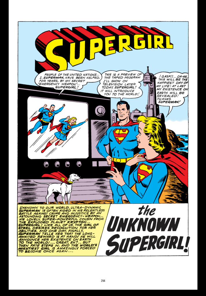 A few years into Supergirl’s run as the backup feature in Action Comics Superman was ready for his cousin to jump into the spotlight and be revealed to the world. Supergirl, up until this point, had been kept as Superman’s secret weapon and would only operate in secret until Superman felt she was competent and trained in her powers. The story begins in Action Comics #278 which has Superman telling Supergirl he is ready to reveal her to the world but due to a handful of shenanigans, and the evil plot of Kandorian Lesla-Lar, Supergirl would not be revealed to the world until Action Comics #285. This 8 issue storyline was rather unheard of in the 60s when these comics were coming out. Unlike today when we often see multi-issue storylines telling a single story over a handful of issues or even plot lines evolving in the background over a full run, the stories of the silver age often stayed self contained in a single issue. Often times these issues even contained multiple stories, in the case of Action Comics Supergirl only had an 8 or 12 page story per issue, making this 8 part storyline even more impressive.