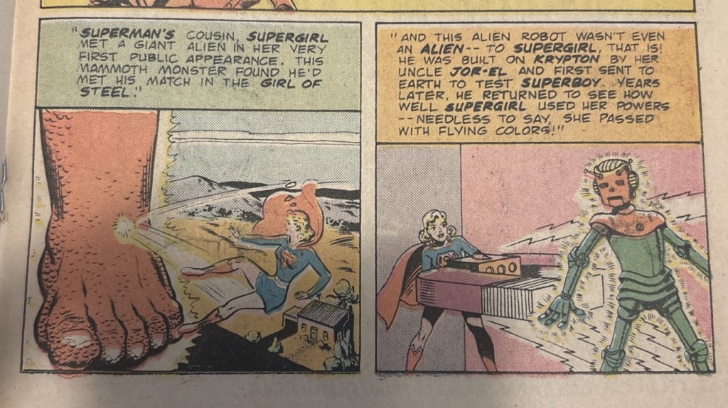 This was a really fun way to look at the Superman Family title to celebrate finally getting a complete run in my comic collection (issue 169 was the last book that I had to find). Please excuse the photographs of the comic pages, these stories aren’t available digitally (at least not easily) and I feel like even if they were on the DC Infinite app, the extras would be excluded. The letters pages were also included in each issue and would rotate between Letters to Lois, Jimmy Olsen’s Pen-Pals, and Super Fe-Mail. These are generally listed along with the extras but weren’t really part of the bonus content that I wanted to cover for this blog post. A couple of personal favorite Super-Extras for me were “New Fashions for Supergirl” and the various Super-Puzzles. The various retellings of Supergirl’s life we saw were also interesting and the Comedy Cover Capers were fun. On a whole though I had a great time going through them and it really makes it feel like getting the whole series was worth it. If you enjoyed reading and want to let me know your favorite Super-Extra feel free to email me at daringnewblog@gmail.com and I’ll see you next time!
