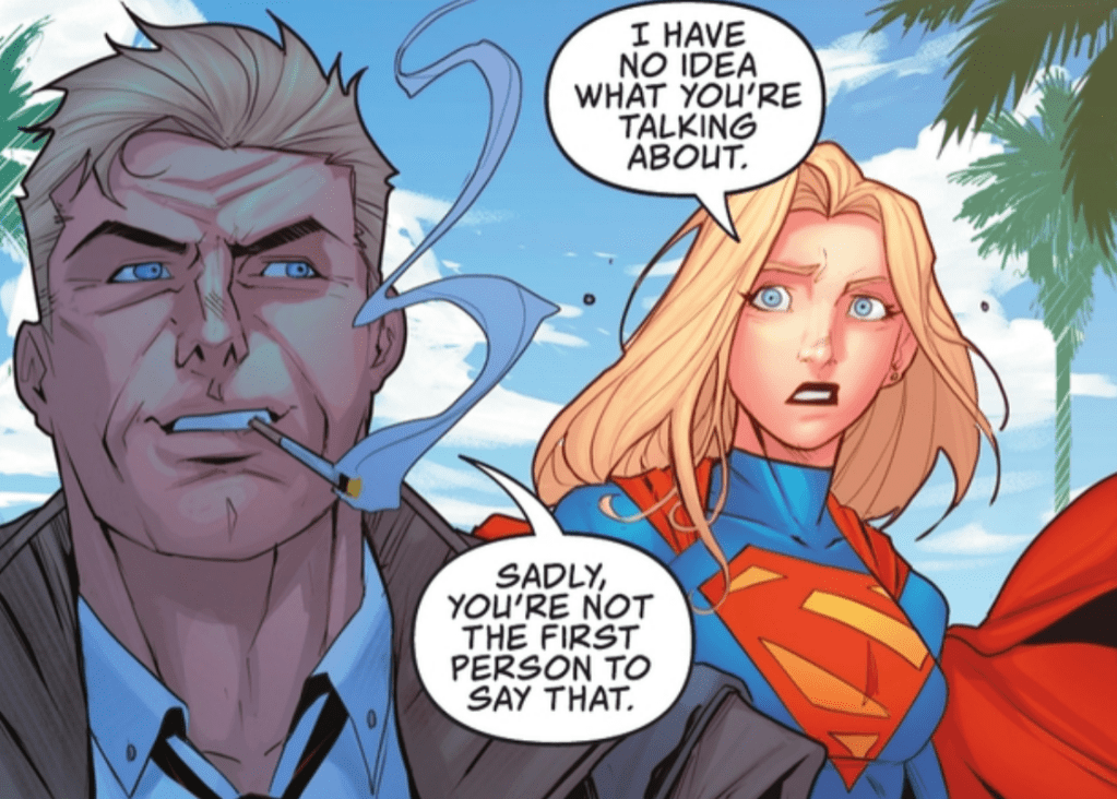 Before giving my final thoughts, I did want to discuss these stories in continuity. The most recent of these stories, “A Dream of Different Stars”, takes place immediately after Linda “Supergirl” Danvers gets adopted and I can absolutely see this story existing as part of the current Supergirl ongoing title, the only thing that feels a bit off is the fact that Linda doesn’t mask her blonde hair at all. It does also fit in with the silver age stories where she didn’t openly use her powers at first since we only see Supergirl in costume as part of a flashback/dream sequence from Linda. The team up with John Constantine doesn’t mention any specific cities or co-stars that would interfere with current continuity and it seems to be Supergirl taking a day off to go to the beach which could easily work within continuity. “Holiday Woes” is truly the outlier here with the mention of National City. National City is of course the home base for the girl of steel in the CBS/CW television series, but in comics she only operated in the city for about a year and a half, so when stories or external media (like the card I mentioned in Supergirl Trading Cards Part 2) mention it as her base of operations I feel a bit disconnected. The characterization of Kara in that story also didn’t quite seem to fit more recent depictions of Supergirl and once again kind of felt more like the tv show as opposed to the comic. With all that, I can whole heartedly recommend both “Something in the Water” and “A Dream of Different Stars”, while “Holiday Woes” didn’t do much for me aside from the Brainiac 5 reveal and a much more successful story (in my opinion) about Supergirl not being particularly in the holiday spirit can be read in Sophie Campbell’s Supergirl #8 also from last month. Let me know your thoughts on these stories and if you want me to cover more of these anthology comics, there are a handful more where Supergirl shows up and I’d love to read them.