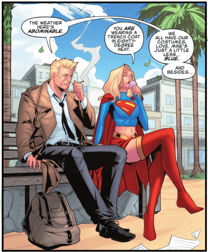 “Something in the Water” was the Supergirl story from Kal-El-Fornia Love and it was written by George Mann, drawn by Travis Mercer, with colors by Andrew Dalhouse, and letters by Michael McCalister. Supergirl teaming up with Constantine was an absolutely bonkers concept that I was excited for from the time it got announced and I have to say that the team delivered on the story.