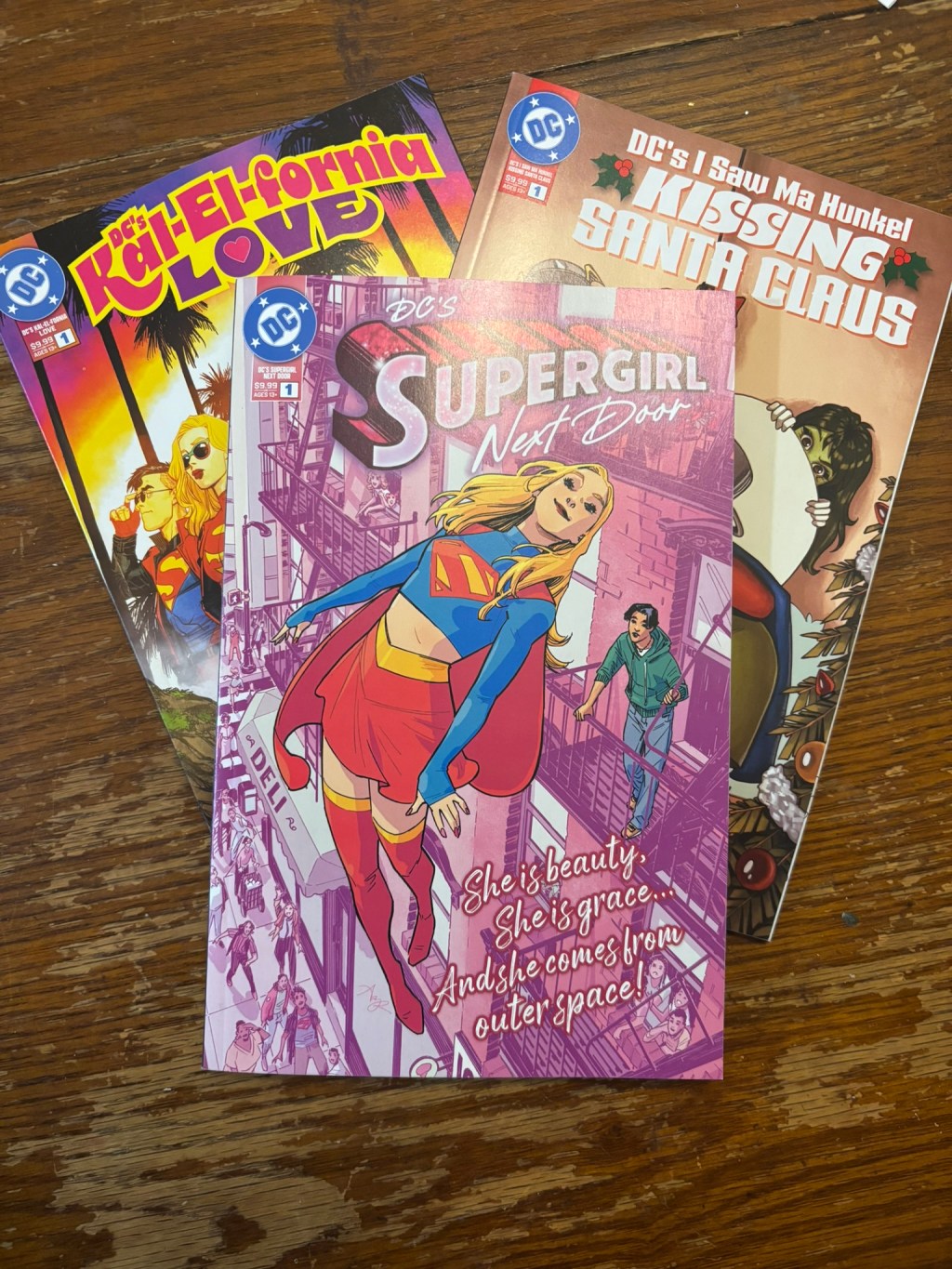 Supergirl is making a pretty impressive push this year in comics with her new ongoing series as well as some one shots and specials and original graphic novels all releasing in buildup to her new movie set to come out in June later this year. DC’s Supergirl Next Door that came out just a couple days ago is one of these specials and it falls in with the rest of DC’s quarterly (I think) holiday anthologies. Supergirl also appeared in the last anthology I Saw Ma Hunkel Kissing Santa Claus as well as the one from last Summer, Kal-El-Fornia Love. I’m going to go over all three of these Supergirl stories today starting with the most recent and working backwards.