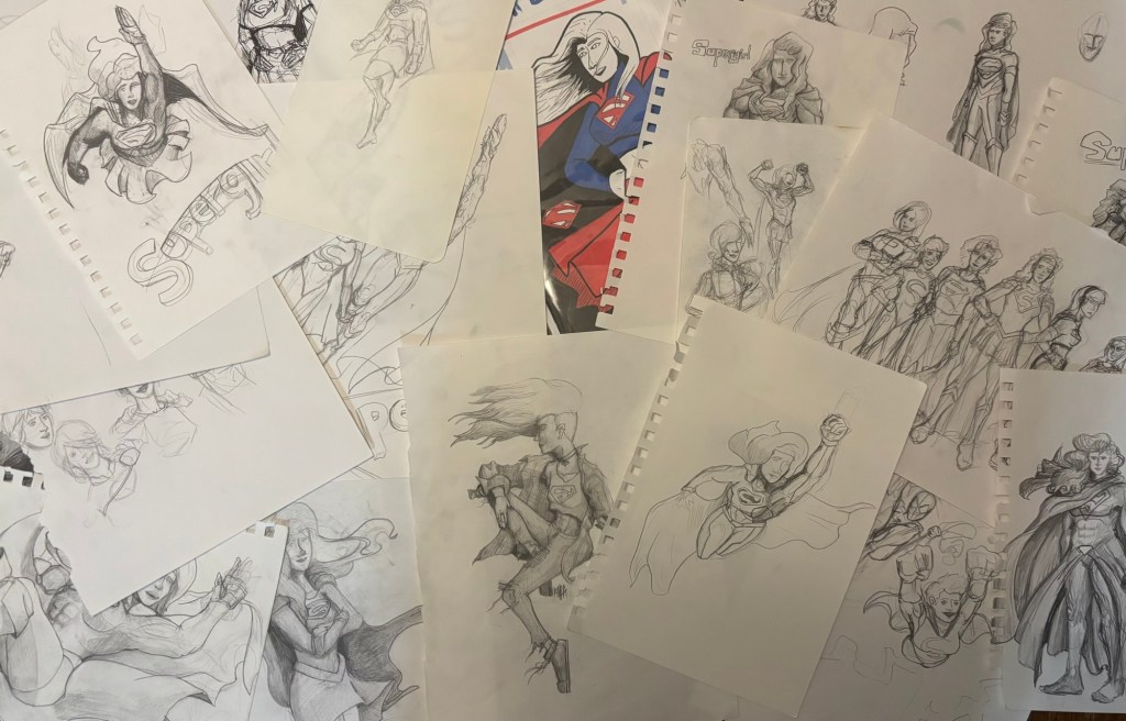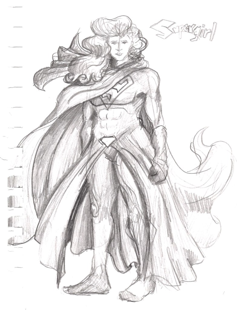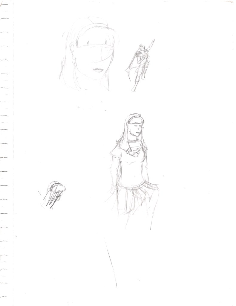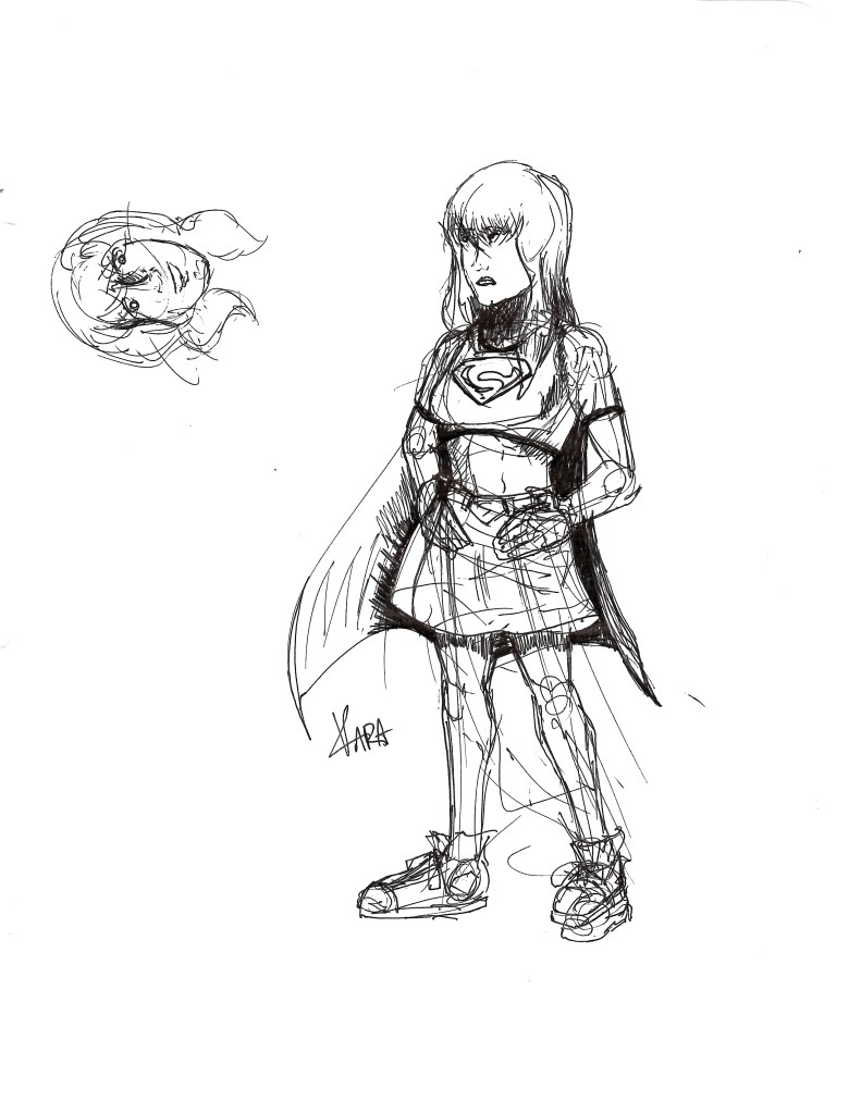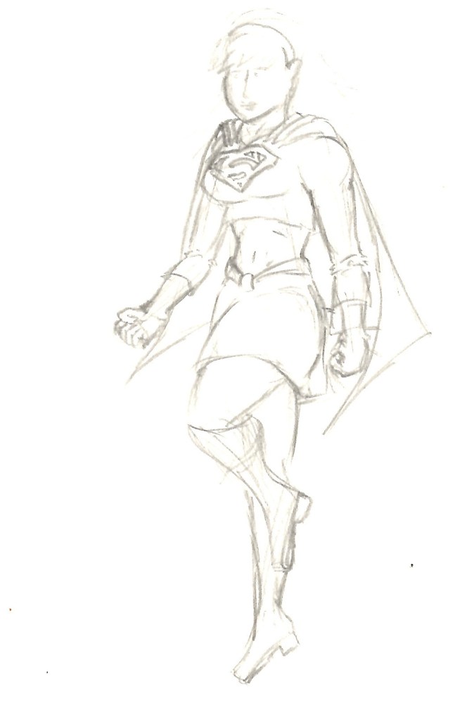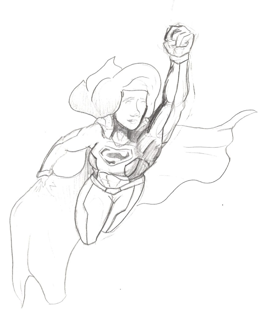 I’ve been watching through the CBS/CW Supergirl television series over the past few months and after starting season 2 I recalled a drawing I made back when the series was airing. I started looking through my stuff and thankfully I have all my old sketchbooks in one place and was able to find the drawing I was after fairly easily. However, in doing so, I also stumbled across quite a few other Supergirl drawings from quite a large span of time. This post will mostly be an archival effort to help preserve my otherwise non-digitized art but I will try to group them as best I can. For those of you who keep up with my blog, you’ll know Supergirl in the Multiverse is my artwork and is made digitally. This is sort of a where did I get started with drawing Supergirl and maybe a way to reassess where I’ve been to see how I can go further. This is by no means every Supergirl drawing I have ever made, and I’ve excluded a lot of sketches that didn’t really go anywhere so you’re not looking at too many just messes of scribbles.