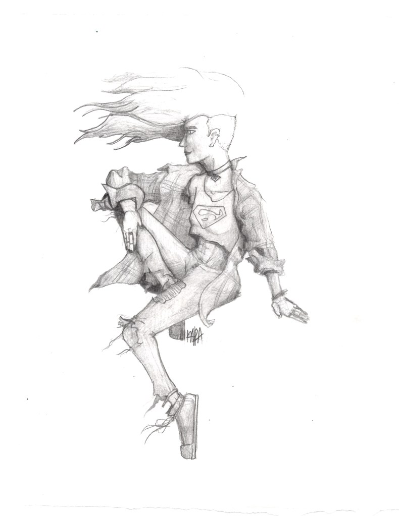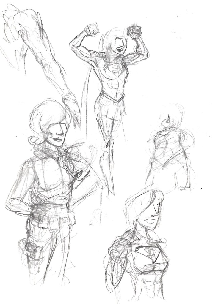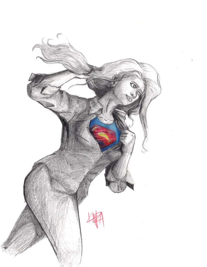 These next 8 drawings all kind of just fall into standard Supergirl drawings and I don’t have much to say about them. I do like the little splash of color in the the shirt rip drawing and I feel like it adds a nice dynamic flare. Otherwise this is just a standard collection of Supergirl drawings.