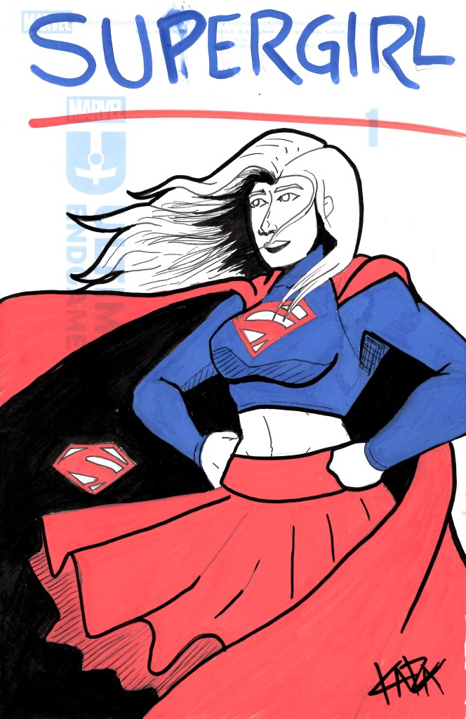 My last little set is a bit of a look at Marvel/DC crossovers. On the left is me drawing Supergirl on the cover of Marvel Ultimate Endgame #1 mostly as a joke, but the right is the never to be explored crossover of Mayday “Spider-Girl” Parker and Cir-El Supergirl. There isn’t too much explanation for the Endgame sketch, I got the Ultimate Endgame blind bag because I thought it would be fun. As you can tell, I got the blank variant in the blind bag and the 10 minute drive home from my comic shop I had the idea of drawing Supergirl on it as a joke. In an attempt to farm content, I took to Bluesky (@spupergirl.bsky.com) to ask my followers if they would like to see that and there was a great response. I had a lot of fun drawing this and I have yet to read the comic (and I probably won’t). Mayday and Cir-El are a great team up and I feel like they would get along and It would be a great story to see in an upcoming Marvel/DC crossover. I imagine there aren’t any DC execs here reading but if you are, I would do it for free.
