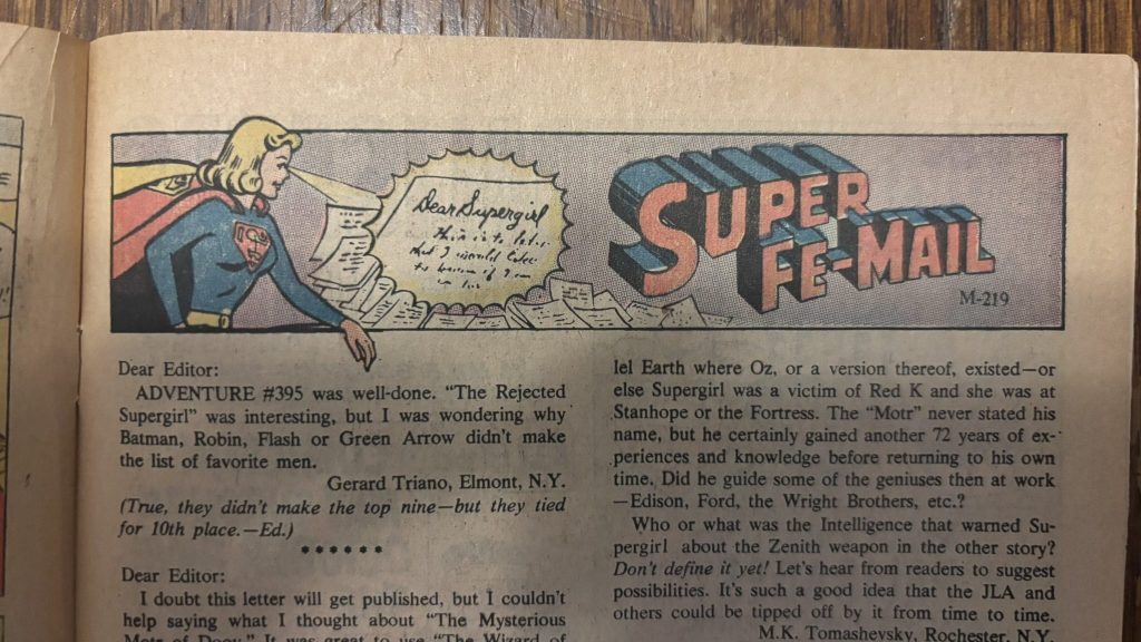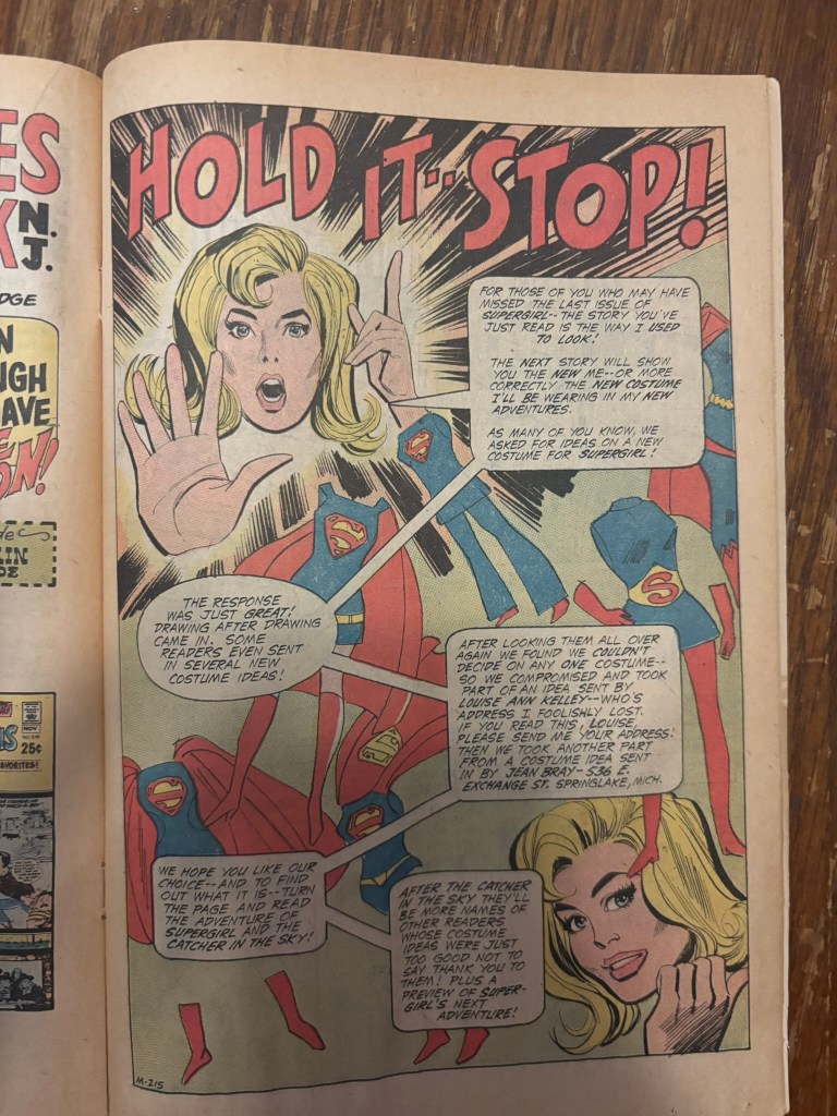 Before we get to the 1970 story, we get a full page of Supergirl letting you know the story you just read was old and she doesn’t dress like that anymore. This is a nice transition between the A and B stories and also serves to highlight the fan costume designs for the maid of might which were featured in the issues around this time.