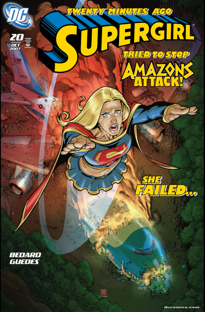 Speaking of Wonder Woman, “Executive Mistake” refers to the Amazons Attack event (the 2007 one not the 2023 one) where Supergirl and Wonder Girl (Cassie Sandsmark) tried their best to help out and ended up probably causing more harm than good. The event as a whole was a 6 issue mini-series as well as a handful of tie in issues but the cover I always think of when thinking of this event is the one show above from Supergirl (Vol 5) #20 which I’m pretty sure is when the event the entry is referencing happened.