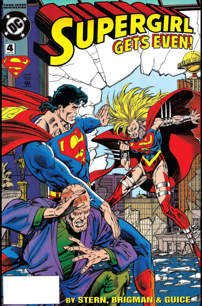 After many months of being in a relationship with Lex Luthor II (who was actually just Lex Luthor I with better hair), Matrix finally finds out that he’s bad news in her 1984 miniseries Supergirl (Vol. 3). The image shown here is from the cover to issue 4 of the mini and shows Supergirl’s reaction to finding out Lex had been cloning her for nefarious deeds and Superman is trying his darndest to stop her from killing Lex. Does this really count as Supergirl going bad if she’s just getting Lex back for being a tool? That’s for you to decide! I will say this is one of my favorite alternate Supergirl costumes and was used as inspiration for me in my most recent Supergirl in the Multiverse post on Super-She-Hulk.