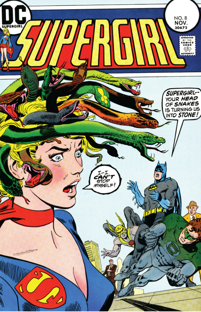 “Bad Hair Day” was the other of the entries that I didn’t know right off the bat, but it comes from Supergirl #8 from 1972 in a story appropriately titled “A Head-Full of Snakes!” This story opens with Linda rehearsing for a play at Vandyre University where she is playing the role of Medusa. She then gets cursed by the actual Medusa’s ghost and she gets cursed to start turning anyone she looks at to stone. This story actually has a similar story structure to the one from Action Comics #324 with Supergirl helping someone at the start, getting cursed where she turns on her fellow heroes, and then everything just going right back to normal at the end. A perfectly serviceable story but I do feel like “turn people to stone” doesn’t have quite as much potential as “devil ring that gives you 3 wishes” so it doesn’t quite hold up to me.