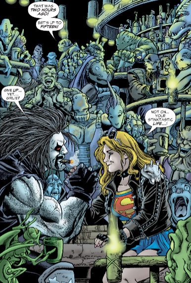There’s a really nice dynamic presented in this issue between the Main Man and the Maid of Might that really works. Lobo is convinced he’s the center of the universe and makes sure Supergirl knows it. Supergirl is in her rebellious teen era but she’s still trying her darndest to be a great hero nonetheless. These competing egos are constantly getting pushed over the edge by Lobo hitting on Supergirl (who is 16 at this time) and Supergirl thinking he’s the most vile piece of work she’s ever seen. All in all a great read and the Supergirl/Lobo moments work perfectly fine in isolation even if some of the larger plot gets lost reading this issue by itself.