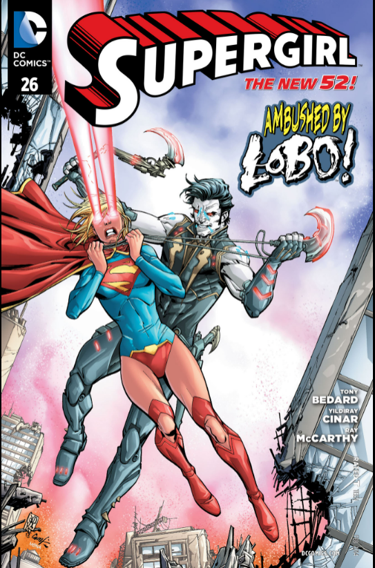 Moving onto “Survivors” from Supergirl (vol. 6) #26, presented by Tony Bedard writing, Yildiray Cinar penciling, Ray McCarthy inkng, and Rob Leigh lettering. It seems like Lobo (which yes this story features the New 52 twink version of the character) has landed on earth where he is tracking what seems to be the standard Lobo but I haven’t read any New 52 Lobo comics so I can’t really confirm what his story line was going through. What I can say however is that his informant points him towards Shay Veritas.