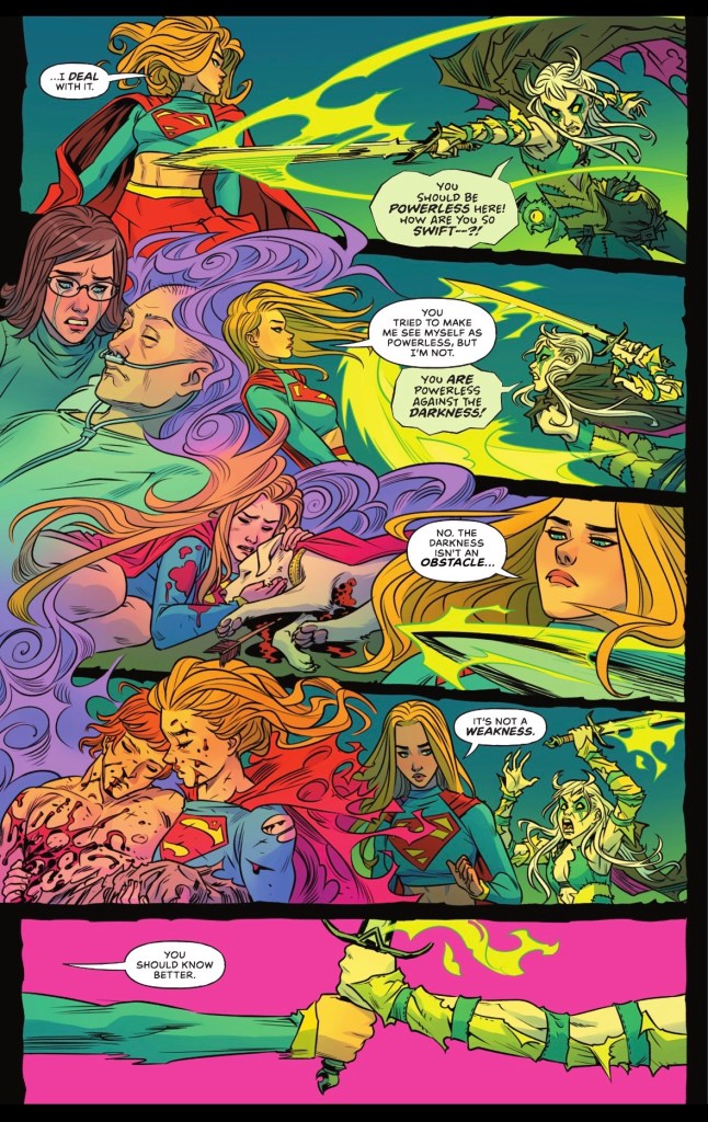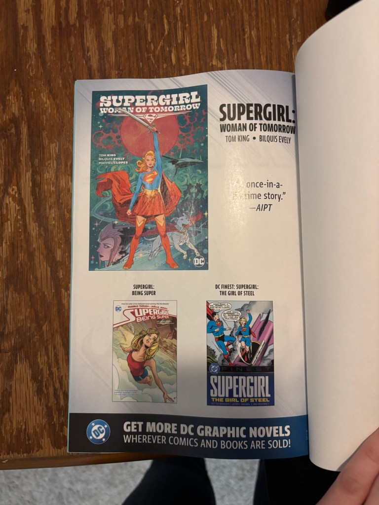 As a collected edition, this is fairly bare bones. For the most part the six issues are just reprinted without changes. I did notice that the “to be continued” blurbs from each issue did get removed but some of the editor notes that mentioned “see last issue” were still intact which feels counterintuitive to me. Before each issue you get both the Sophie Campbell cover as well as the Artgerm cover each presented without any cover dress so you can appreciate the art all by itself. In the back we get a handful of pages of cover galley and a few sketch pages from Sophie Campbell. The advertisement for other Supergirl trades is the same as the set from the Universe End trade and I think it’s a great set to show readers a wide array of Supergirl stories. The story is fun when it needs to be and heavy when it needs to be, there’s action, there’s dialogue, and there’s a fully formed supporting cast, this truly is a Supergirl story for everyone.