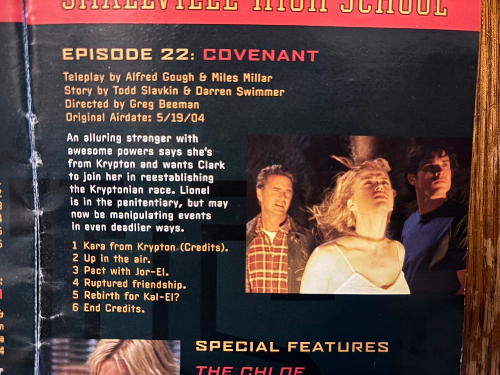 Covenant was the 22nd episode of Smallville’s 3rd season and aired May 5th, 2004. Teleplay by Alfred Gough and Miles Millar, story by Todd Slavkin and Darren Swimmer and directed by Greg Beeman. I think it’s also important to note Jeph Loeb is credited as “Consulting Producer”. Loeb worked on a lot of Smallville so it’s no surprise to see his name here but I do think it’s important to note that just a couple months before this episode aired, Superman/Batman #8 was released. Jeph Loeb wrote a lot of the Superman/Batman series but issue #8 and the next few issues after reintroduce the character of Kara Zor-El. The Kara in this episode doesn’t really share much with her comic contemporary, but the opening sequence of this episode does share some similarities with Kara’s first steps on earth from Superman/Batman #8. Kara being naked and destroying that car both seem very similar to the comic counterpart. If you’d like to learn more about the reintroduction of Kara Zor-El in the pages of Superman/Batman as well as the animated movie based on it, I wrote about both in a blog post a few weeks back (read it here).