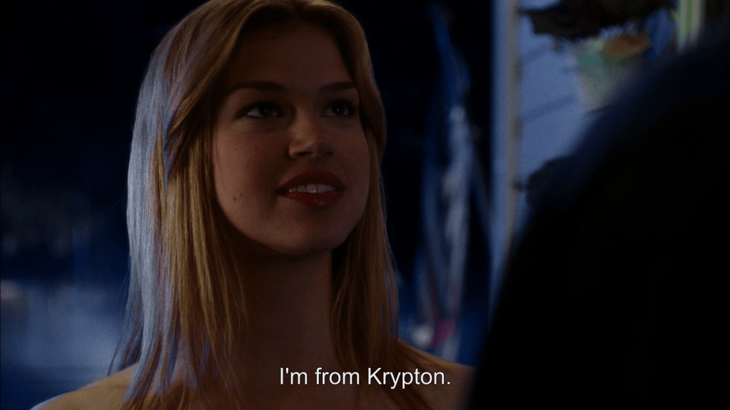 Adrianne Palicki plays Kara/Lindsey Harrison in this episode and I think she does great with the character as she was written. I personally don’t think this character makes for the best Supergirl, but it does build on some of the early Smallville specific mythology of Superman that had been shown in the series thus far. I’m not super familiar with Palicki’s other work but I would like to note she was tied to 2 other DC shows, neither of which made it past a pilot: Aquaman (2006) and Wonder Woman (2011). While I like the mythology of Smallville with the Kawatche caves and the like and I do feel that this character fits into that nicely, I much prefer the Supergirl character that gets introduced later in season 7 of this show.