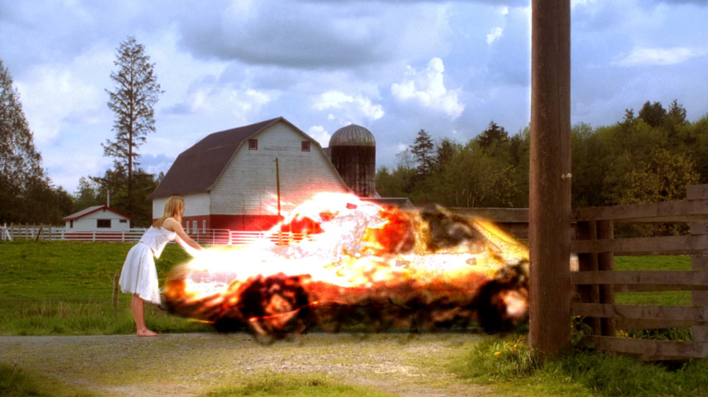 The episode opens at night in Smallville and we’re introduced to a naked blonde girl walking through the countryside where she obliterates a car before she arrives to the Kent farmhouse and tells Clark; “Hello, Clark. My name is Kara. I’m from Krypton.”