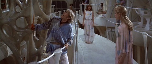 Kara, aside from being naked in her first scene, only wears this white skirt and tank top combo throughout the episode. I’m not positive where these clothes come from because it doesn’t really seem like Martha Kent’s style and I also feel like this episode takes place over a few days but she’s only seen in this outfit which seems like a weird choice but I guess maybe Kryptonians don’t change clothes as often as the rest of us. Speaking of, the white flowing fabrics do seem somewhat reminiscent of the Kryptonian wear from the Superman movies from the 70s and 80s and somewhat like what the Argo citizens wear in the 1984 Supergirl movie. I don’t necessarily think this is a reference and probably just the creative minds behind the episode, and Jor-El, trying to portray this character as pure or angelic to help convince the viewers, and Clark, that she can be trusted.