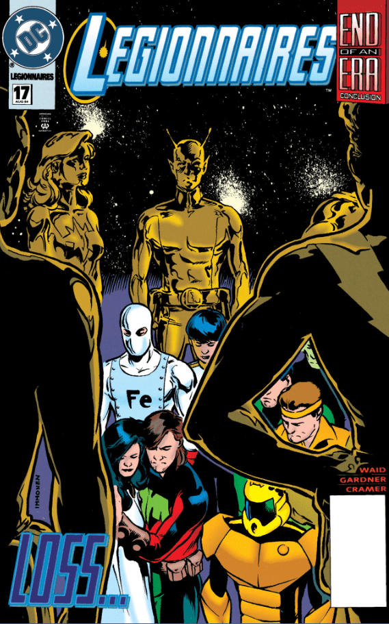 Satan Girl wouldn’t appear again in a new story until 1994 in Legionnaires #17. Written by Mark Waid, art by Chris Gardner, Dennis Cramer, and Tom McCraw, and letters by Pat Brosseau. This story History Lesson functions as the start of the conclusion arc of the Legion story End of an Era which was their tie in to the Zero Hour Event. This story dealt a lot with weird time travel shenanigans and multiple copies of Legionnaires and all around a confusing issue to read in isolation. However, since we’re not doing a full breakdown of the issue and just here for Satan Girl, we can skip right to page 14.