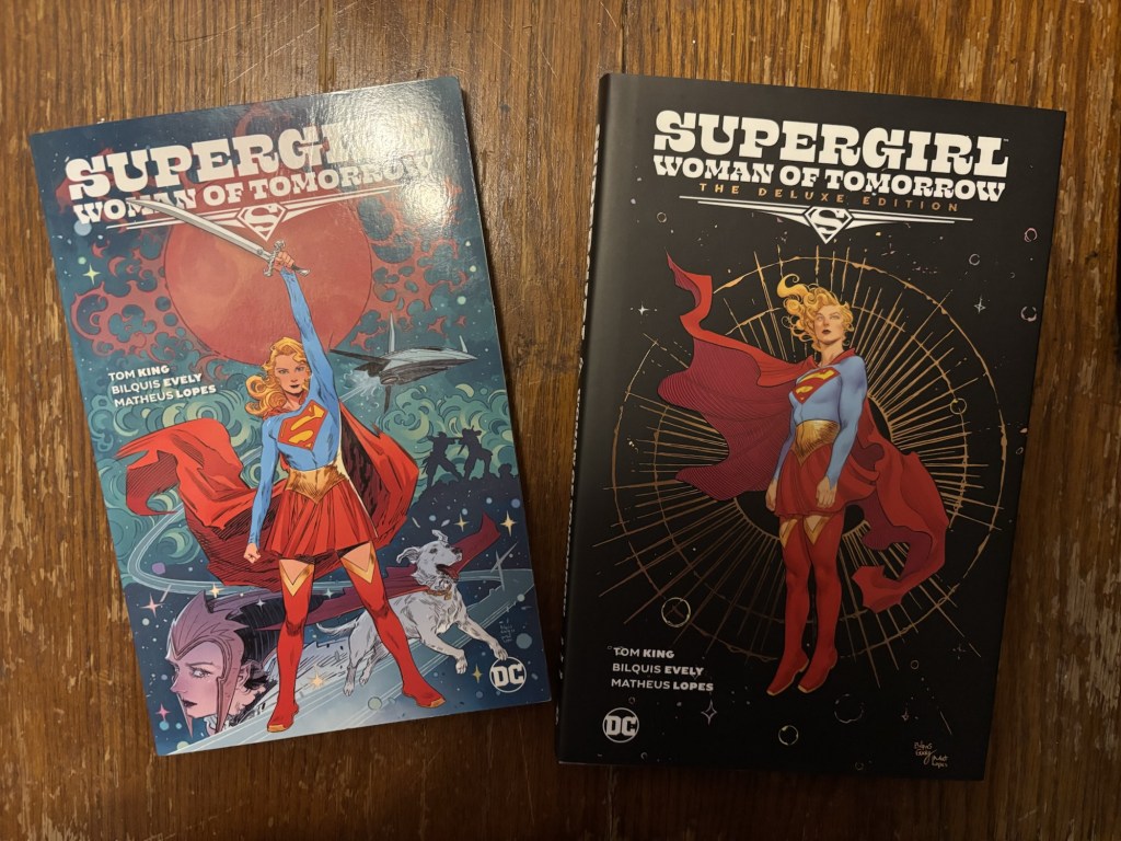Let’s talk collected editions! Supergirl: Woman of Tomorrow was initially relased as 24 page single issue comics from June 2021 to February of 2022. The first collection was a trade paperback version in July 2022, this would collect all 8 issues, a cover gallery for the variant covers (the main covers were included throughout the story), and a 3 page sketch gallery from Bilquis Evely. This is a rather bare bones trade but the sketch gallery at the back is a nice touch and I always love Evely’s art. July 2024 would give us a really nice hardcover deluxe edition of the story. In addition to the 8 collected issues, and variant cover gallery, we get a much more robust 32 pages of Bilquis Evely sketch pages including thumbnail sketches for dozens of pages and covers, as well as sketch pages for some of the variant covers, an introduction from Tom King, and the original draft for issue 6 of the story. Honestly a really robust collection with some really great extras and brand new cover art on the slip cover makes this a great addition to the collection. If you are deciding between the 2 versions of the story I would absolutely recommend the deluxe edition, everything that’s present in the tpb version is included in it and so much more. Digitally, through the DC Universe Infinite app, the story has also been re-presented as a DCGO comic. If you are unfamiliar with DCGO, it is webcomics that have been optimized for reading on a standard smartphone. I have not gone through the entirety of the DCGO version of the story but from what I have seen I wouldn’t recommend it. The artwork has to get cropped in a lot of places to fit the format, and Evely’s art really shines as large splash pages or sweeping imagery that isn’t done justice in this format. Solicited for a January 2026 release is a DC Compact Comics version of the collection. Looking at the page count this will probably be exclusively the issues reprinted and won’t include cover or sketch galleries, but it will have a $10 price point like all of the Compact Comics line and it’s really a steal at that price.
