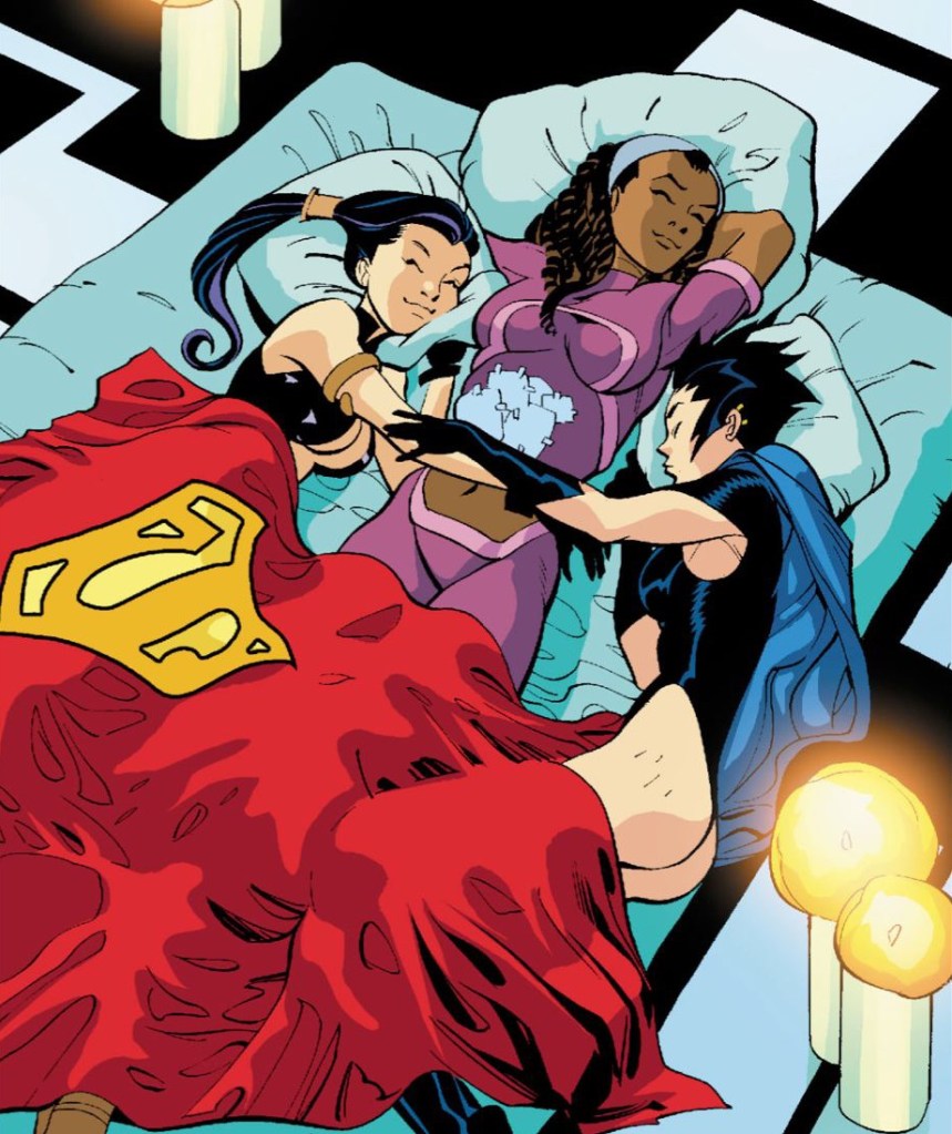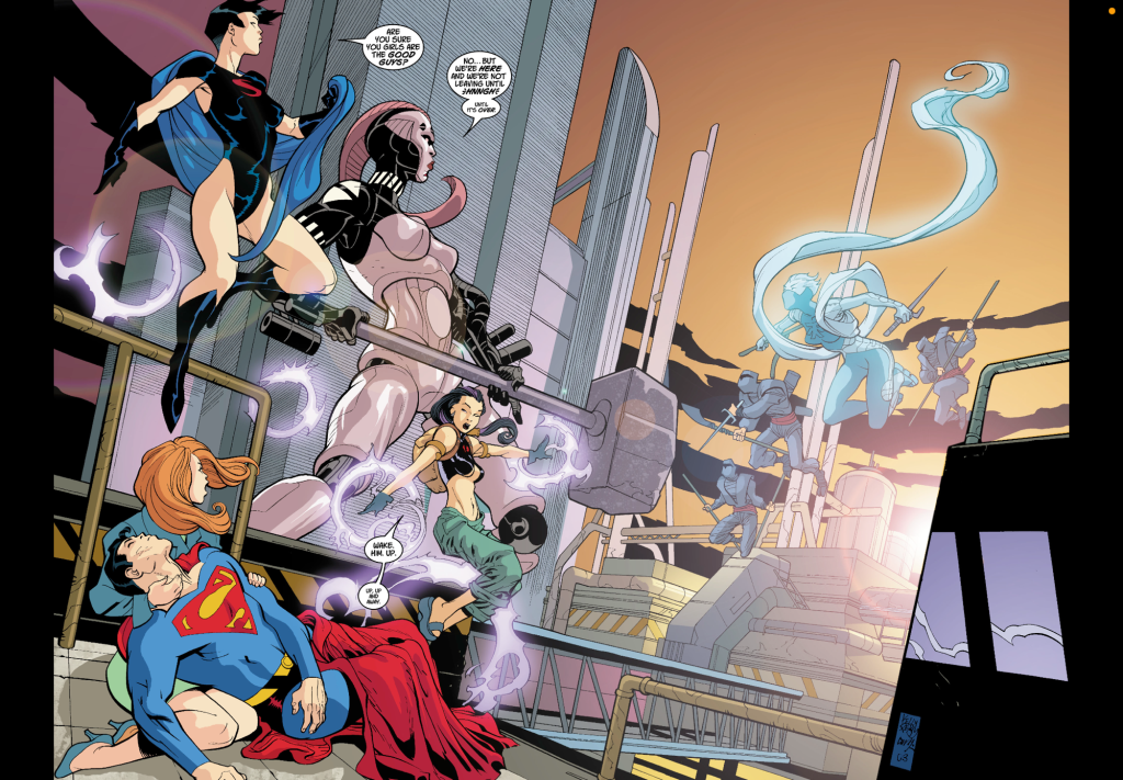 Even though the Supergirls are really no match for Byakko, their admirable determination – and a bit of a pep talk from Nat – helps Byakko realize the world is much better with Superman than without and withdrawals herself from the battle as she tells Lana “[Superman] has wonderful children. My husband would have admired them very much.” This brings up another notable point of the story, Lana Lang. Lana is of course a well known childhood friend and confidant of Clark Kent. More recently to this story, however, she is the wife of Pete Ross who has just jumped from Vice President to President after the arrest of former President Lex Luthor. Throughout the story we see Lana getting an apartment in Metropolis and we learn of her plans to leave her husband. There is also reference to a Kiss between her and Superman that I assume was well documented and happened in a previous story. This supposed romantic relationship is what leads Traci to Lana’s apartment after finding an incapacitated Superman in the streets and kicking off this storyline.