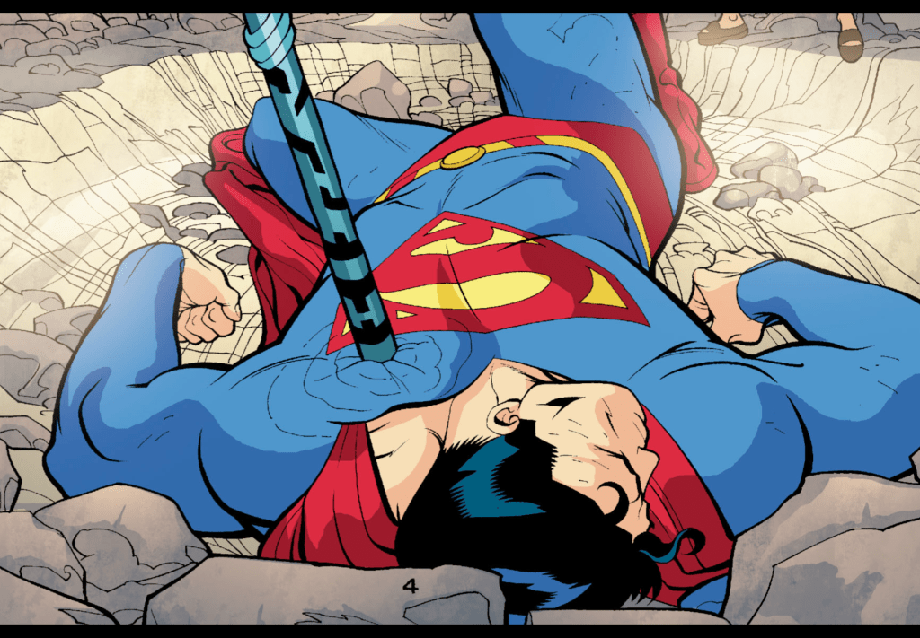 The story itself features a half-dead Superman, injured at the hands of Byakko, another recent addition to Superman’s cast. Byakko is able to phase in and out of things which is how she is able to so easily lodge a pipe in the man of steel and also gets the better of all the Supergirls throughout the story. Byakko blames the death of her husband on Superman, a reference to her introductory story, thus resulting in a lack of Superman action for 3 months in Action Comics.